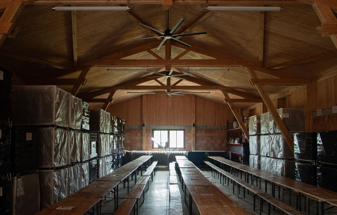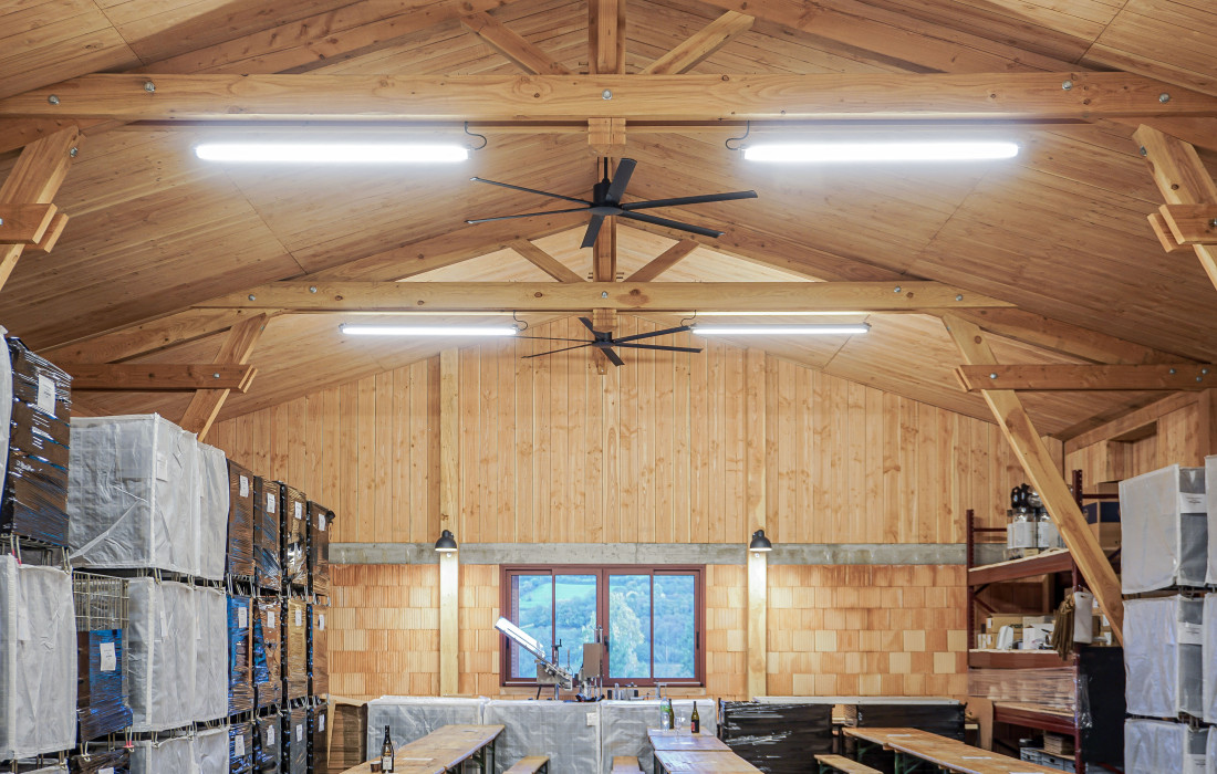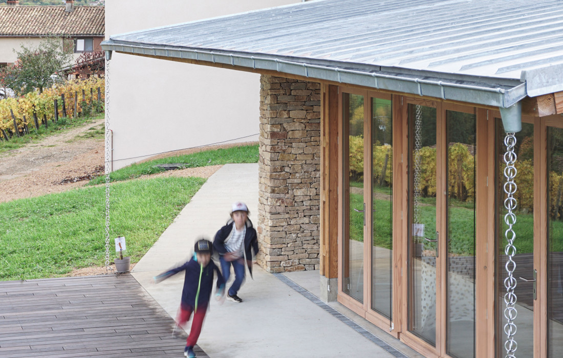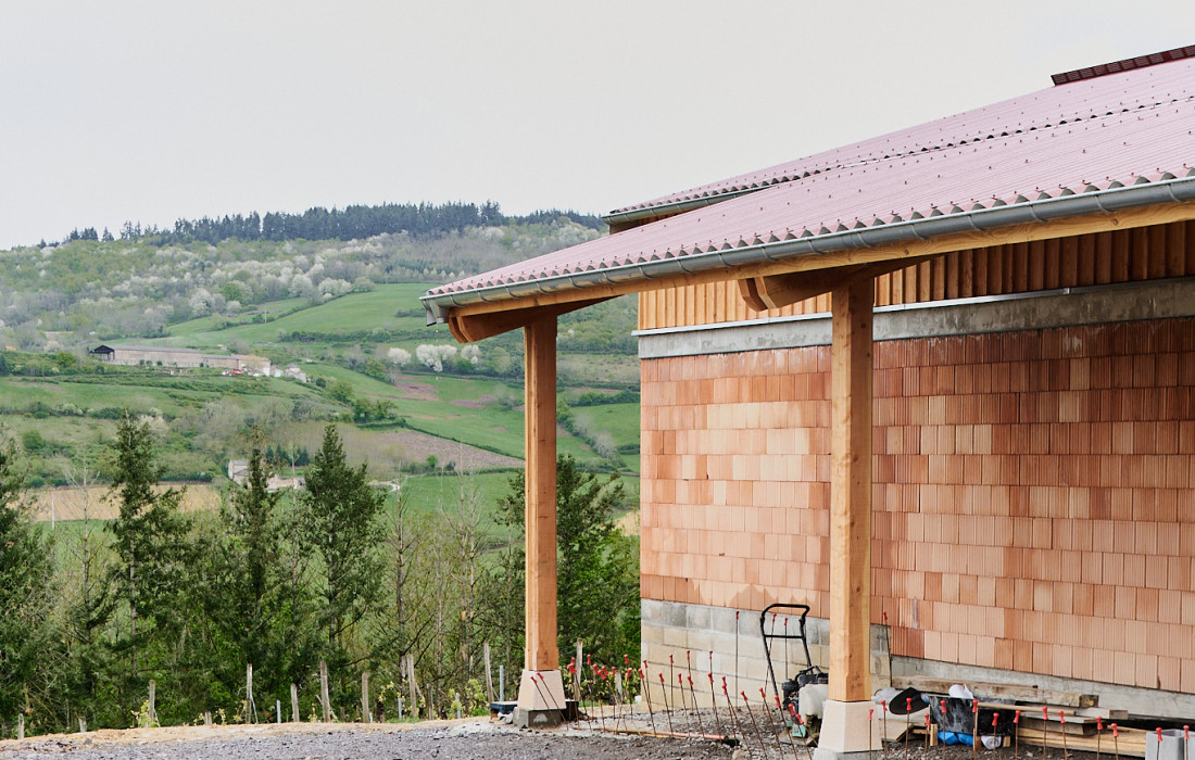 Modifier un cuvage, c’est composer avec la complexité d’un objet agricole : à la fois architecture paysanne rationnelle et édifice sophistiqué dédié au vin. Ce bâtiment-machine absorbe chaque automne la vendange de dix-huit hectares. Convaincus que les choix constructifs forgent l’identité d’un lieu, nous réinterprétons les savoir-faire locaux à travers des matériaux bruts et durables : charpente en Douglas massif, mono-mur de brique, murs en pierre sèche, toitures légères et bardages bois. La dissociation des volumes distingue clairement les fonctions agricoles et commerciales. Le pavillon de dégustation, réinvention contemporaine de la cabane de vigne, s’inscrit discrètement dans le paysage. En belvédère, il conjugue mémoire rurale et confort lumineux pour accueillir visiteurs et contempler le site. Le projet privilégie un confort naturel, sans recours aux automatismes. L’implantation et l’orientation favorisent les circulations d’air et les apports solaires passifs. Une démarche low-tech, sobre, ancrée dans l’intelligence des moyens simples.